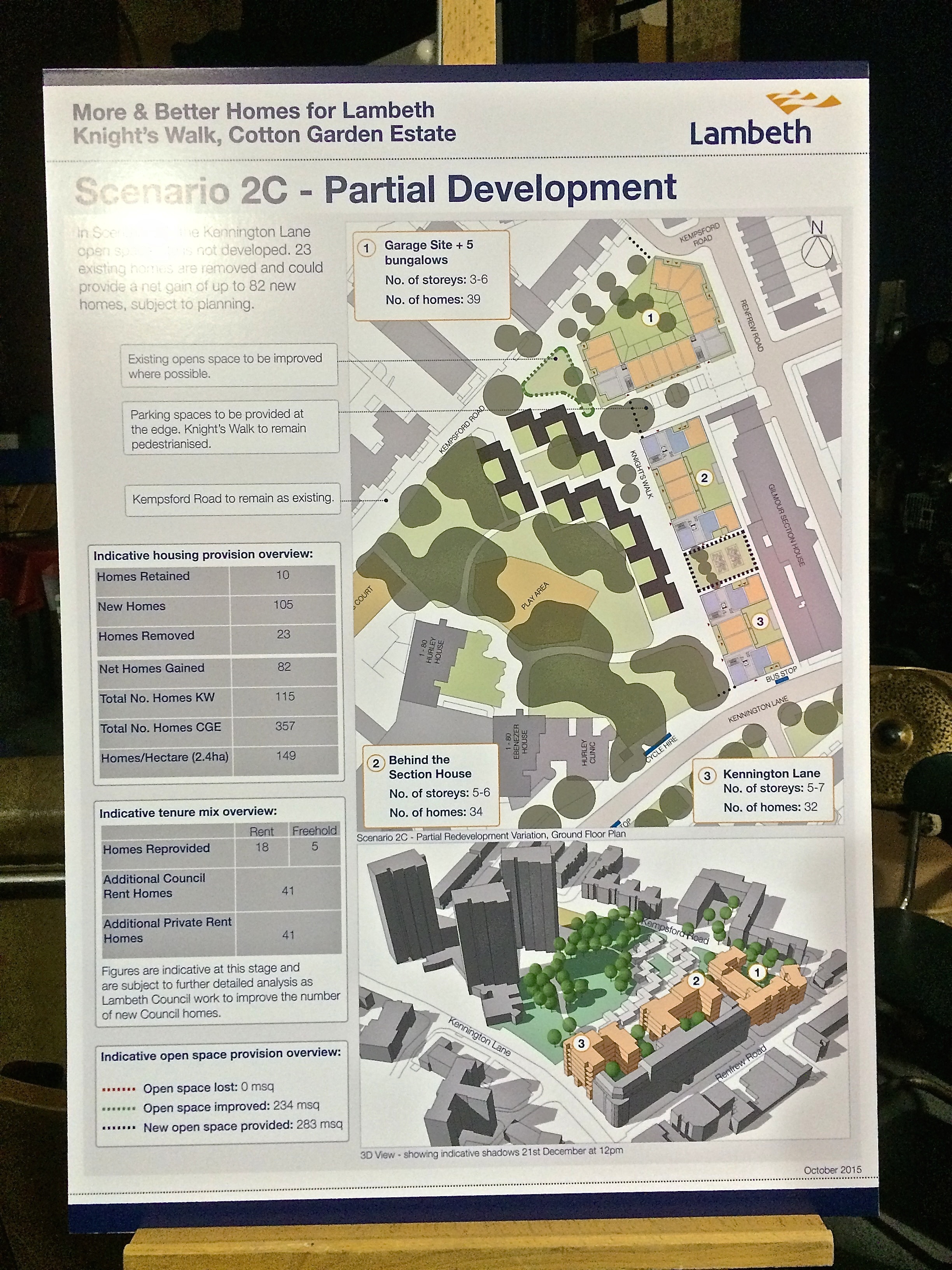 Given that, at the beginning of the regeneration consultation process (which is neither a regeneration nor a consultation), the total demolition of Knight’s Walk was the only option being proposed by Lambeth, this is a considerable victory for the 9 council tenants and 6 freeholders whose homes will be saved.