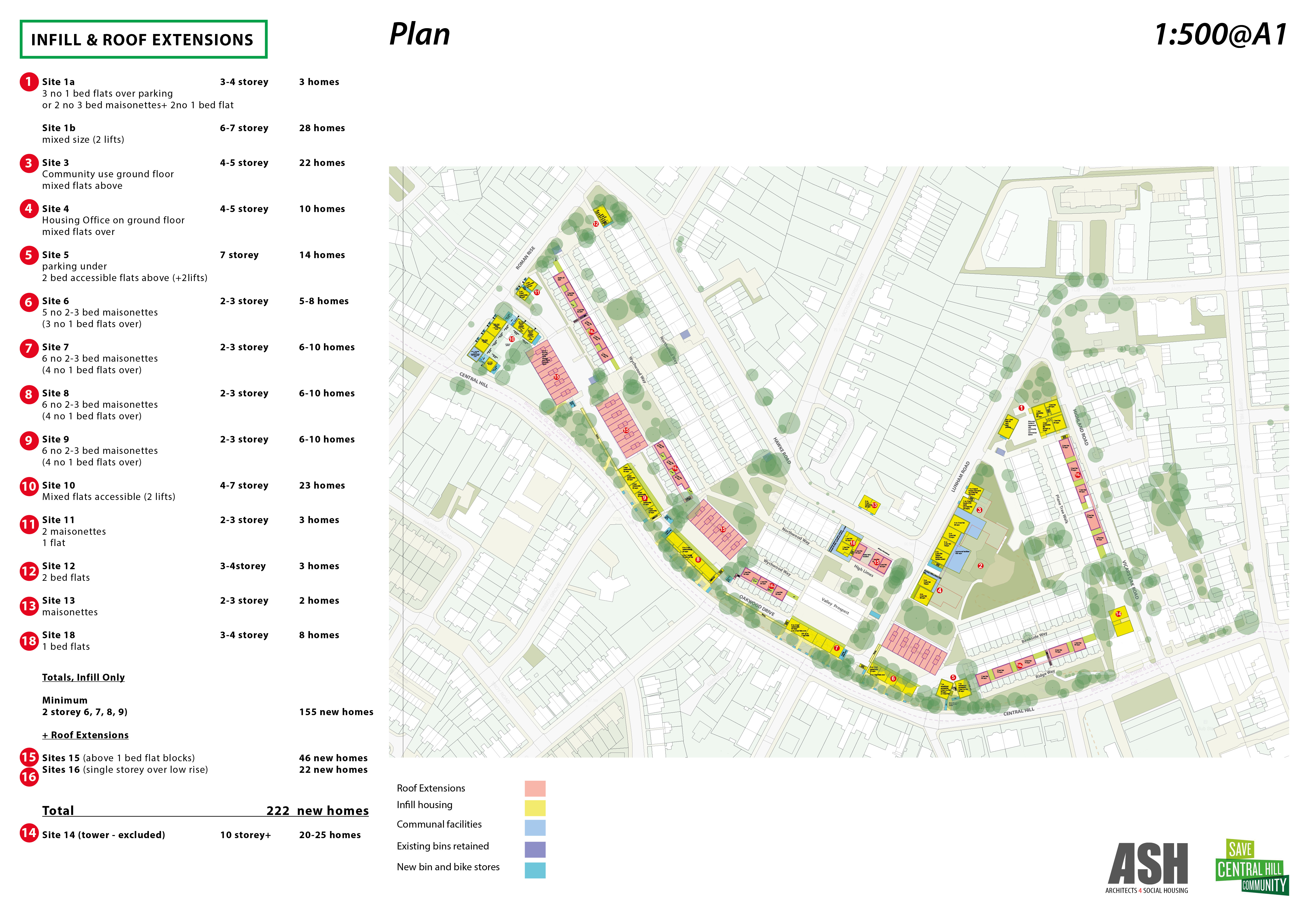 ASH’s proposals illustrate the potential to add around 222 new homes on Central Hill Estate, without demolishing a single home.