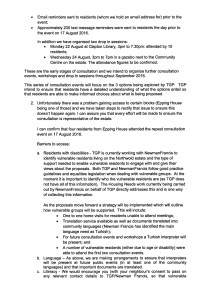 From your letter dated 1 July, as well as my conversations with you and others that evening, The Guinness Partnership is clearly stressing that the consultation is genuine, that residents’ views will be fully taken into account, and that we will be kept informed at all stages. I have doubts that this is truly the case, and have many concerns about the process, which I have numbered as follows: