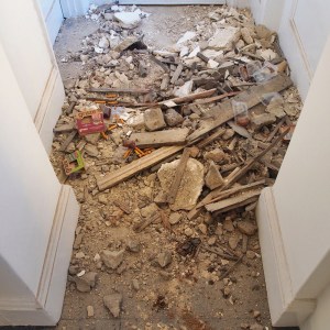 Although unoccupied for only 6 months, 4 Grosvenor Square was, if anything, in an even worse state of disrepair. In one room the ceiling has fallen in, probably due to a leaking boiler, but the pile of rubble on the carpet below – if we are to believe our expert Regeneration Officers – is indicative of a failed experiment in this architectural form. By the same token, its damp and worn carpets betray a broken community living forced to live in an unloved property; while large cracks across the walls and ceilings are signs that the building is in danger of imminent collapse. The property has numerous broken windows – doubtless from gang warfare, as it is well known that SW1 is a battleground for rival Russian factions. And the strip lights appear unchanged since the property was last purchased in the 1970s, with electrical fittings and alarm systems a couple of decades out of date – proof, according to some recent academic studies, that the entire building has come to the end of its natural lifespan.