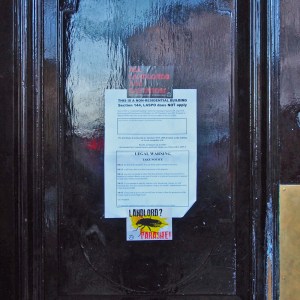 The following Saturday the occupation, which had announced itself as an ‘anti-fascist’ squat, was attacked by a group of about 20 fascists who smashed three windows and tried to force entry into the building. An English Defence League march was taking place in Westminster that afternoon, and it’s likely that the attackers, who included the Nazi-saluting Ian MacTaggot, was a breakaway group. There were about 50 squatters and visitors in the building at the time, and once the children were taken upstairs away from the stones, the attackers were fought off with fire-extinguishers. The police, who had sat in squad cars outside the squat all day, conveniently drove off half an hour before the fascists arrived, and returned shortly afterwards. The Metropolitan Police Force still hasn’t come up with an explanation of how a gang of 20 masked-up fascists were able to inflict such damage in broad daylight to a building on the most expensive street in London surrounded by CCTV at a squat that had been reported around the world and was being watched by private security guards – and still walk away without being stopped.
