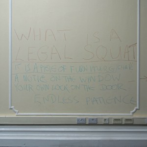 Early the following morning, Wednesday 1 February, High Court bailiffs – assisted by the Metropolitan Police in what is a purely civil matter – turned up at 102 Belgrave Place. After several hours of resistance by the squatters, bailiffs broke through the barricades and the building, which had been occupied for a week, was emptied again – one of more than 20,000 empty properties in London with a total market value of over £12 billion. The 40 or so squatters who had been living there since the previous Wednesday were physically ejected by the bailiffs onto the street. During the eviction, WPS 163 explained to squatters that bailiffs from the Sheriff’s Office, following the High Court sanctioning of the eviction, ‘are legally allowed to remove people in whatever fashion they chose’. Whether this is true or not, it clearly established that for the Metropolitan Police Force property rights come before human rights. In what appears to be Westminster Council’s official housing policy for its homeless, the sergeant asked if any of the now homeless squatters ‘needed a lift to the police station’. The squatters declined the offer.