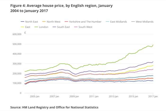 FACTS. London house prices have risen by 86 per cent since 2009, and at an average price of nearly £491,000 in January 2017 now cost fourteen-and-a-half times the average London salary of £33,720. In Inner London that price rises to £970,000. Home ownership in the UK peaked at 71 per cent in 2003 and has been declining ever since, with only 40 per cent of Londoners predicted to own their own home by 2025. Rents on London’s private market have risen by 9.6 per cent in the past two years alone to an average of £2,216 per month for a 2-bedroom home, double the national average. The Joseph Rowntree Foundation have predicted that over the next quarter of a century rents will rise at twice the rate of incomes, and renters will be twice as likely to live in poverty. As of September 2016, a total of 73,000 households in England, including 115,000 children, were living in temporary accommodation. In London alone, 250,000 households are currently on housing waiting lists, 240,000 households with 320,000 children are living in overcrowded accommodation, and 53,000 households with 78,000 children are homeless and living in temporary accommodation.