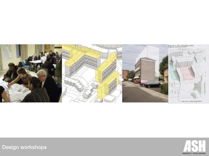 To explore what a sustainable future for our housing estates might look like, ASH has spent the last two years working with residents on estates, investigating the social, economic and environmental consequences of estate regeneration, and proposing design alternatives to demolition. Ultimately, we propose ways of improving the homes, landscape and community facilities on the existing estate by providing options for building additional housing on the land without demolishing a single home or evicting a single resident. The plans we produce are put forward by the residents as part of their campaigns to save their homes. We call this model ‘Resistance by Design’.