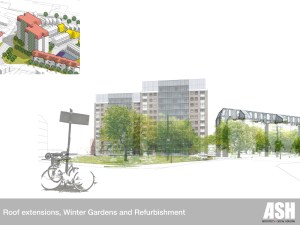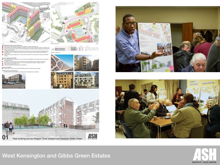 Residents from West Ken and Gibbs Green have been fighting for 8 years against the demolition of their homes by developer Capco, which has included the estates within their £1.2 billion Earls Court development. In September 2015, ASH was approached by the West Kensington and Gibbs Green Community Homes – a Community Land Trust set up by the residents – to produce a feasibility study for additional homes and community facilities, as well as refurbishment and improvements to the existing homes and landscape. This feasibility study is the basis of the residents’ current application for the Right to Transfer the estates from Hammersmith and Fulham Labour council into their own ownership and management.