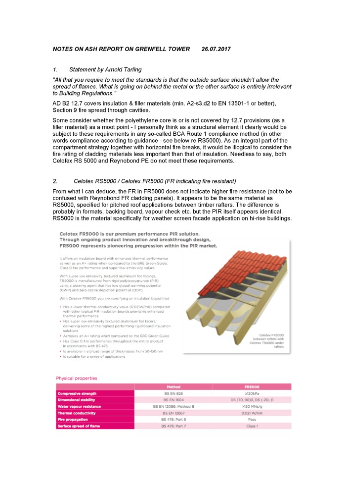 1. As chartered survey company involved with insulation of older buildings, we have also run foul of Kingspan, and their lies about involvement with Grenfell, and flammability of insulation. The Channel 4 program recently, exposing them as company behind testing all insulation materials is a national disgrace. ASH have done well to start the ball rolling – it is important to act swiftly before evidence is destroyed and covered up, emails deleted, papers burned, as most assuredly they will. The Establishment will close ranks – Kensington council will lose crucial planning documents, emails, etc. This is a wake up call to examine the entire planning and building control system from the ground up – how can private industry be allowed to influence in any way. More defined testing by independent labs, rules that are black and white – and apply to every council – eliminate grey areas of planning. Building Control must have a precisely defined role with black and white rules. It’s not rocket science, but it cuts out a huge swathe of opportunity for corruption and profit – so it won’t be easy.