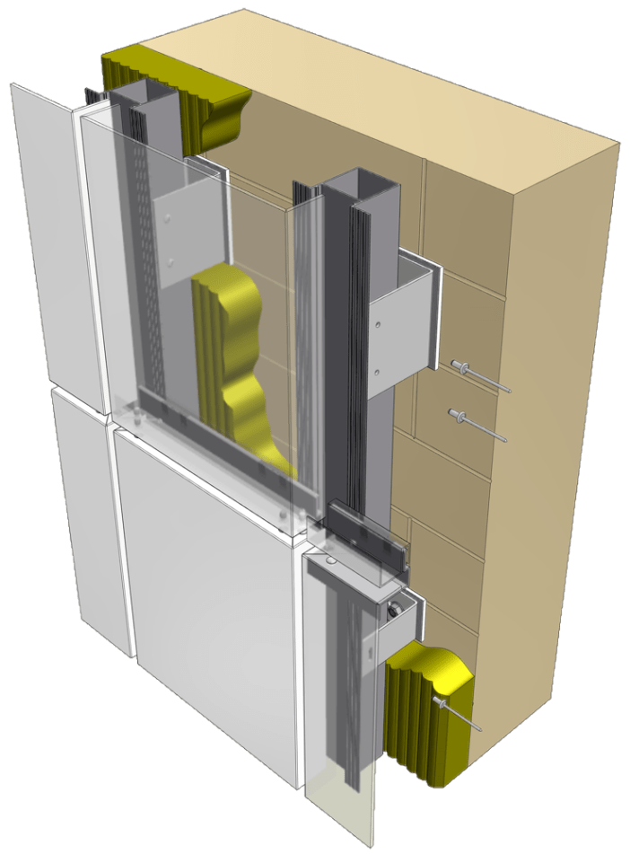 2. A cavity or gap of 50mm between the first layer of thermal insulation and the cladding panels in order to allow any build up of moisture to evaporate.