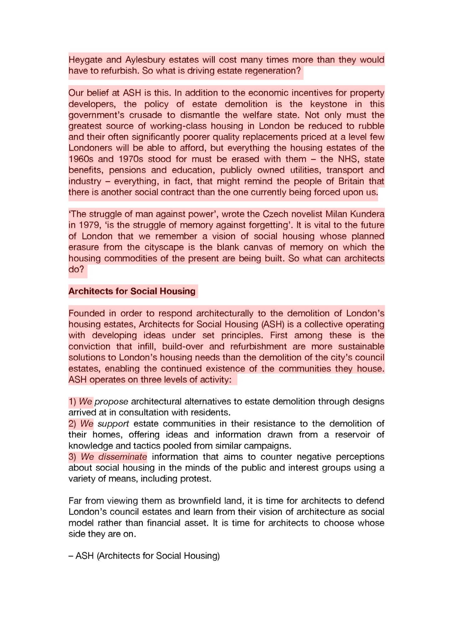 The Good Practice Guide to Resisting Estate Demolition: ASH response to the GLA