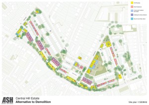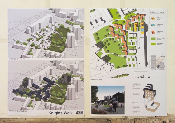 I think this is why your exhibition today struck such a strong chord with me. Whilst I have studied various community produced plans in response to council-sanctioned estate regeneration (including Cressingham Gardens’ People’s Plan in Brixton, StART’s Community Land Trust plan in Tottenham, and plans of various spaces threatened by Camden’s Community Investment Plan), the plans presented in the ‘Design Alternatives to Estate Demolition’ section of the exhibition spoke to me like nothing else has as of yet. Your plans for Knight’s Walk, West Kensington & Gibbs Green, Central Hill, Patmore and Northwold estates all seemed inherently sensible ways for providing critically needed affordable stock whilst keeping and improving the already existing housing and facilities on these estates. It struck me time and again that the plans you put forward are without doubt favourable to any plans the councils that these estates sit within seem to be set on. I left filled with a sense of bemusement and resentment that councils seem to be consistently ignoring such accessible and sensible plans that have genuine resident input in favour of technocratic formulations that more often than not run against both the desire of residents and the pressing housing needs that all (particularly London) boroughs face.