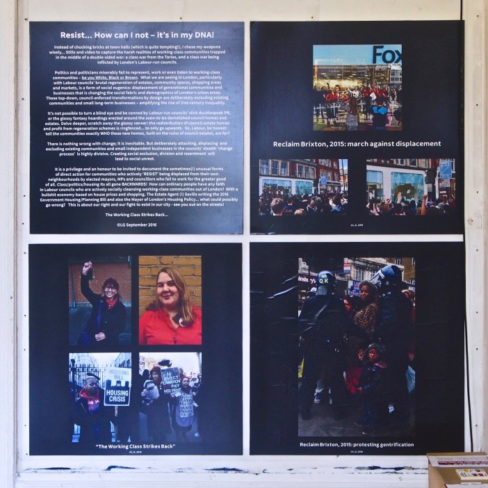 Photo-collages by L.G. documenting campaigns against estate demolition, council-led gentrification and the social cleansing of working-class communities from London, this work was first shown last year as part of the Resist Festival at the London School of Economics.