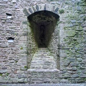 Filled-in arrow slit on ground floor, north wall