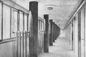 This didn’t, however, mean that it was welcomed by the Soviet government – quite the opposite. By 1930 Stalin’s grip on the Politburo was almost total, and as a product of Constructivism the Narkomfin building smelled of rebellion, avant-gardism, utopian leftism and permanent revolution – all things the Russian Revolution had initially embraced but which Stalin now denounced with a single, deadly word: ‘Trotskyism’. Ginzburg called the Narkomfin building ‘transitional type’ housing. While the two-bedroom maisonettes (K-type) for families on the first and second floors were self-contained, with their own kitchen and bathrooms, the interlocking, split-level, one-bedroom apartments (F-type) over the third, fourth and fifth floors, designed for single residents and childless couples, had their own toilet and shower cubicle, but residents had to use the communal kitchen and dining room in the adjoining annexe, which is reached along an enclosed walkway from the first floor. The building was revolutionary, therefore, not only in form and structure but also in function, affecting the transition of its residents from a domestic life based around the bourgeois family to a properly collective mode of living.
