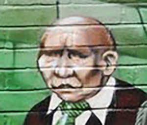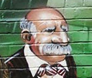 All well and good but I am a bit concerned at the quality of this mural – highly stylised is one thing, but left to right, I will give the artist the first three if I must, but if that is Carnegie and Warburg they are both in tha last days of a losing battle with cancer in which aggressive chemo-therapy has been deployed. Carnegie has lost his beard and hair, while Warburg’s moustache has disappeared. Finally Crowley is wearing a Groucho Marx disguise. If those aren’t names pulled out of thin air i’ll eat my hat and boot and iron.