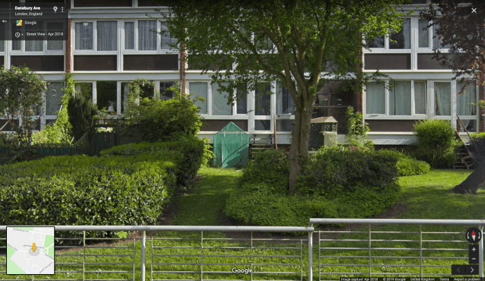 Alton West estate, however, has some of the most successful implementation of this modernist principle I know. On the hill below Highcliffe Drive, where five Le Corbusier-inspired blocks descend on rising piloti down the steep hill, the large expanse of grass and trees below has been designed as a space on which residents can meet, walk their dogs, hold picnics and play games. What caught my eye, however, during my visits to the estate, is the area immediately to the west called Sherfield Gardens. In the north of the two parallel lines of housing, residents have private gardens divided from the street by high brick walls; but in the blocks to the south something different has emerged, and apparently not from design. Here, on a curving strip of land between the pavement and the 4-storey blocks of maisonettes, a topiary of hedges carved into irregular shapes marks out an open maze between the trees. Although presumably the work of gardeners working for Wandsworth council, residents have appropriated this liminal space for their own use.