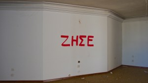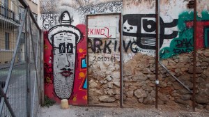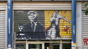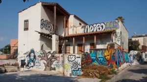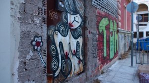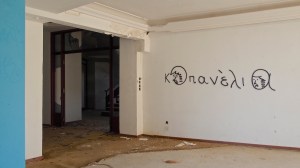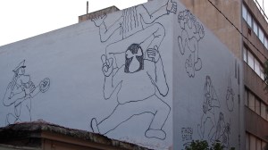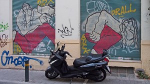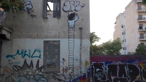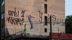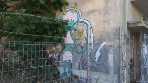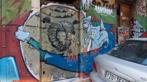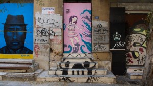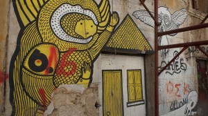 That the beautiful, derelict, listed houses around the neighbourhood of Metaxourgio are graffitied with hundreds of heroes, gods and monsters of the Modern Greek tragedy.