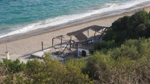 That on the northern shore of the Gulf of Lakonikos a shipwrecked fishing boat lies rusting and marooned on the sands.