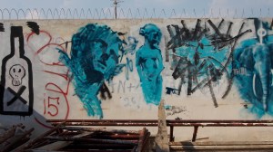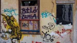 That on the crumbling wall of a vacant lot piled with debris, spray-painted words say ‘Athens is the new Berlin’.