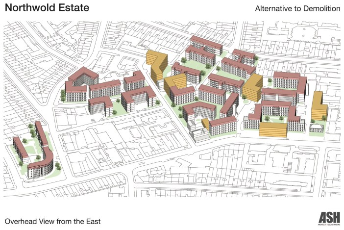 On our proposals for the Northwold estate in Hackney, ASH again demonstrated that we could increase the capacity of the existing estate by over 40 per cent without demolishing any of the existing homes. Indeed, the 245 additional homes we were able to add to the existing 580 was identical to the number of homes that Guinness Trust, the landlord, were planning to add through the demolition and redevelopment of half the estate. Unlike these, however, at least half the dwellings proposed by ASH could be for social rent, while the cost of demolishing the 154 homes targeted by the Guinness Trust would mean at least half their replacement would have to be for market sale. Like Lambeth council the Guinness Trust have now cancelled their plans to demolish the Northwold estate, and are also now pursuing an infill and refurbishment scheme very similar to the one proposed by ASH.
