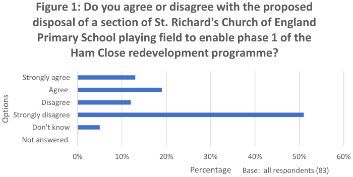 In architectural terms this is nonsense. Even if we were to accept the unfounded argument that it is necessary to demolish the existing estate in order to increase its housing capacity, the only constraints to using the land cleared of the demolished Youth Club for the first phase of such redevelopment is that this area is bordering Ham Green, and is clearly going to be where the high-value, market-sale properties envisioned by BPTW Partnership will be built, not the segregated affordable housing blocks to which existing residents will be moved. Across the UK school playing fields are being lost to private developers, with 215 sold in England since 2010, and Richmond council’s transferral of this public land and education and health amenity into the hands of private investors on such a flawed basis, and against the wishes of even the hopelessly unrepresentative survey (83 respondents) of the local community and parents of the school children (below), is nothing less than an act of privatisation designed to increase the profits of RHP and its development partners.