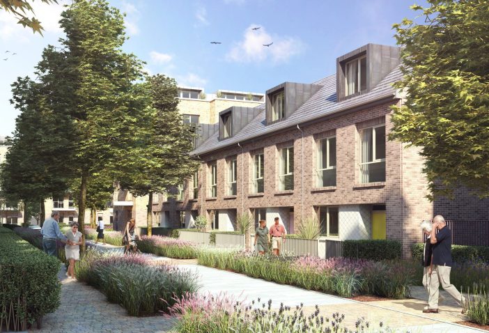 I hope BPTW’s architecture is better than their grammar; but although quality should be an aim of any new contribution to the built environment, it should not come at the prohibitive cost of new housing provision, which in the case of the townhouses proposed by BPTW (above) will be anything up to three-quarters of a million pounds; and the emphasis on high quality in architectural discourse has been employed to conceal the blind spot of housing affordability. Homes should not be ‘highly sought after’, which betrays the market framework within which the proposed new properties are being built; they should be available according to the housing needs of constituents – precisely that framework in which council housing such as Ham Close was originally built and continues to function. ‘High quality’ and ‘highly sought after’ are part of the salesman’s patter of estate agents, and should have no place in a strategy framework for housing provision by a registered provider of social housing or a local authority.
