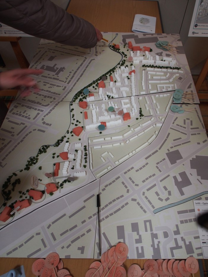 The focus of the exhibition was a series of design options developed by KCA for both infill housing and redevelopment of the estate. According to the timeline for the project on the first board, in June 2020 these 6 options will be reduced to 2: one for infill and one for redevelopment. This will be followed in late August by masterplan proposals, and then, in October, by the resident ballot. What hasn’t been made clear on these boards, and which most residents we spoke to were unaware of, is that the ballot will not be for a choice between the infill and redevelopment options. That decision will be made by Brent council’s Cabinet at some unidentified time, most likely before the masterplan proposals, but possibly after. Just as residents were on the ballot for the South Kilburn estate, which has been recommended to St. Rapahel’s residents as ‘exemplary’, the infill option will be removed before the ballot, and residents on St. Raphael’s estate will simply be asked whether they are in favour of redeveloping the estate.