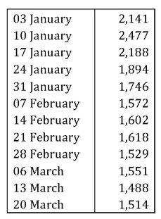 To answer this, let’s go back and remind ourselves how many people have died this year in England and Wales where the underlying cause of death was respiratory disease. These are the figures from the Office for National Statistics for the weeks ending: