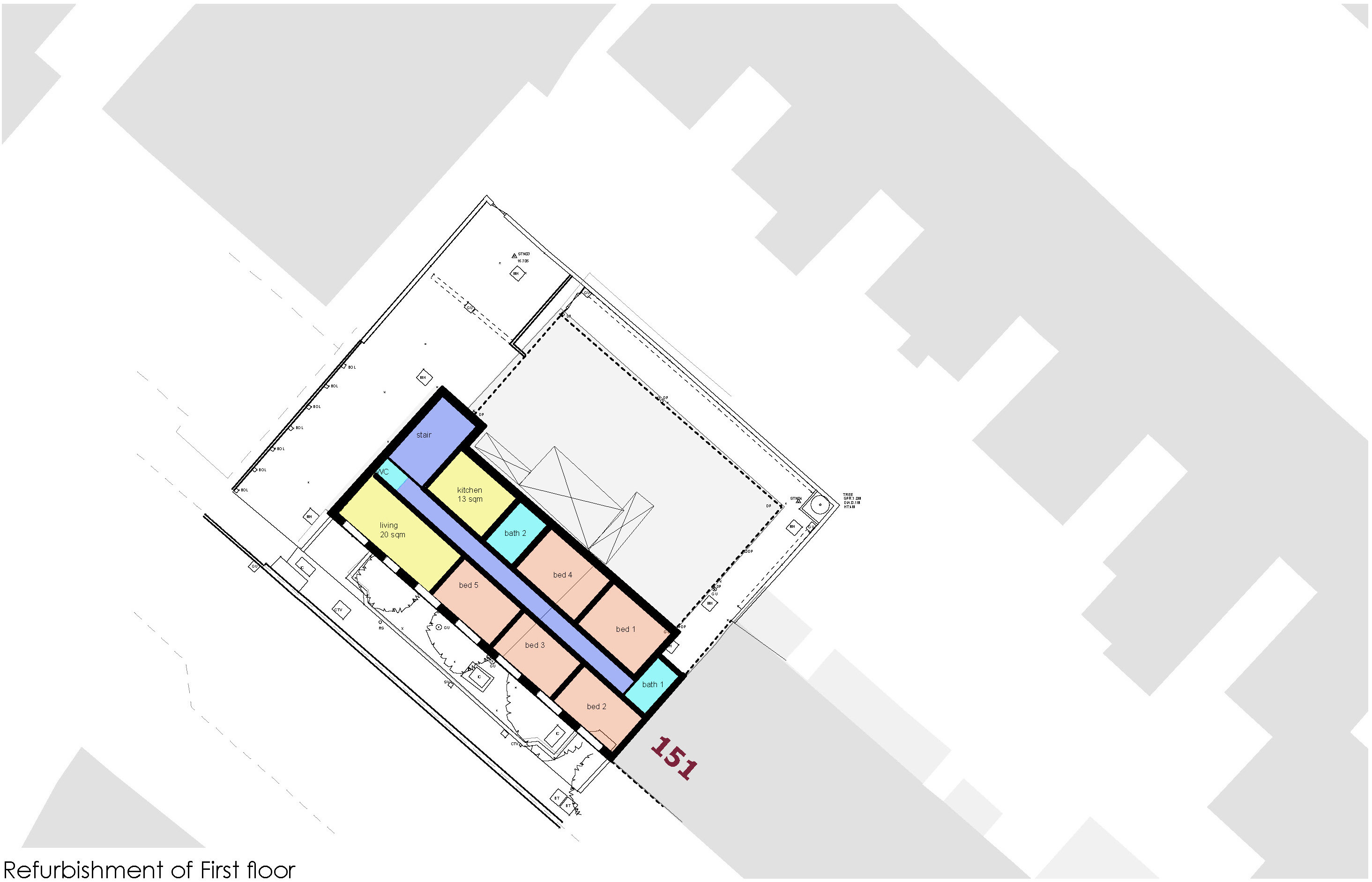 - Cons. a). It will not provide adequate living environment on the ground floor. b) It is restrictive in terms of opportunities for adaptation. c) The existing building has a small footprint, so we would have to increase the numbers of residents to make the project financially viable, and would need to add a second floor, increasing the overall height of the structure and therefore its impact on the surrounding environment.