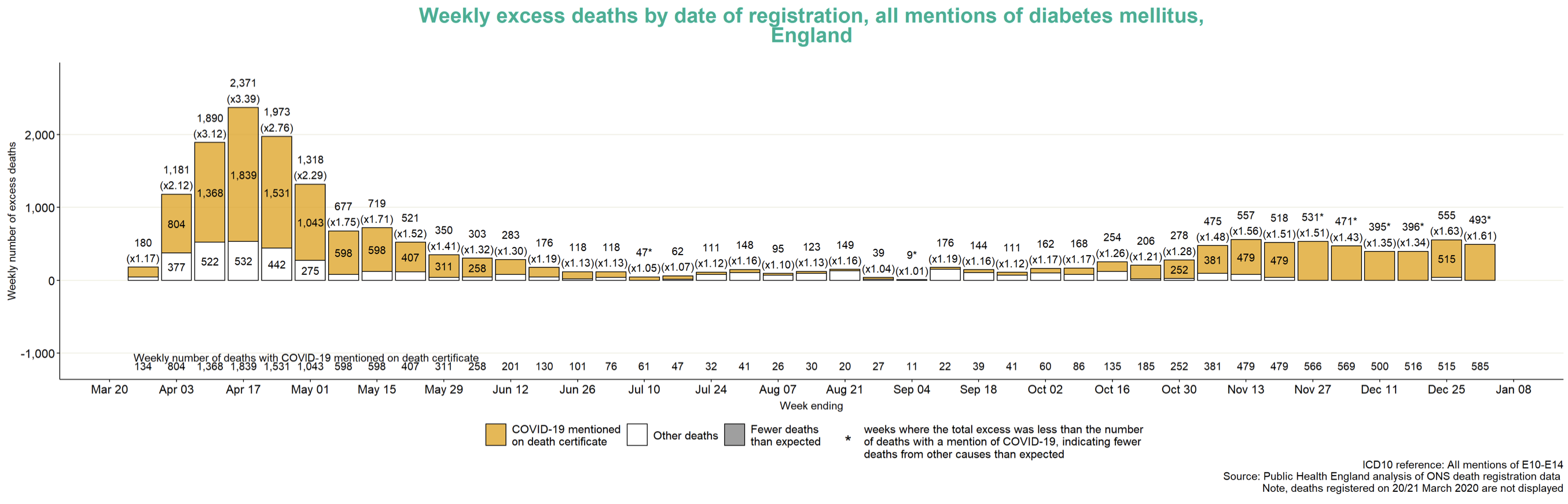 What these figures don’t show, unfortunately, is how many of the deaths from these diseases and illnesses not in excess of the 5-year average were also recorded as COVID-19. But until this information is published, which is unlikely to happen soon if ever, the analysis by Public Health England has additionally revealed that, between 21 March, 2020 and 1 January, 2021, there were 18,851 excess deaths in England in which diabetes was mentioned on the death certificate, of which 15,589 were recorded as COVID-19 deaths, nearly 83 per cent of the total.
