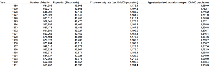 More incredibly, deaths from chronic lower respiratory diseases were down by 2,764 from the 5-year average of 29,681, a 9 per cent reduction.