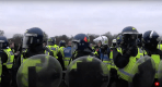 With riot-shields and helmets