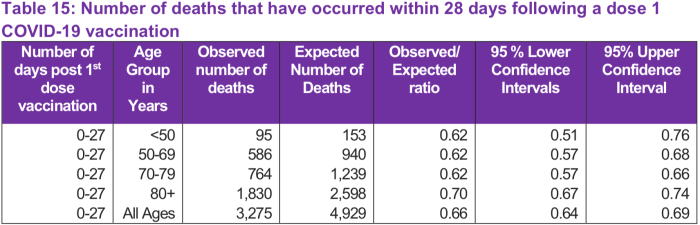 7. Stop press! The latest version of the data in question has ‘1-21 days post 1st. dose’ as the column heading, thereby finishing the job of demolishing my little theory. I’ll get me coat.