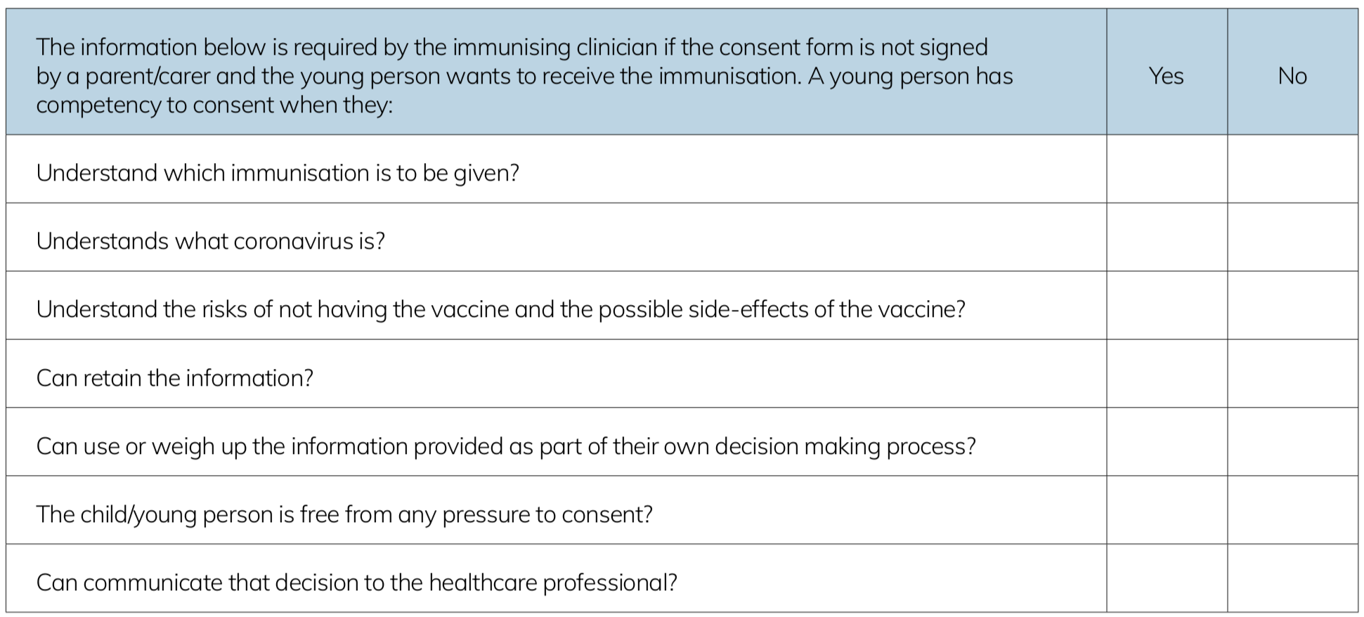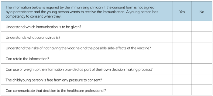 - ‘That the patient is informed of the material risks of both taking and declining the vaccine.’