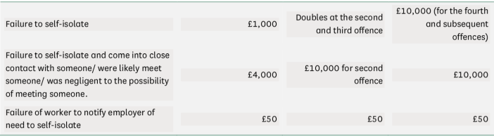 4) As do the Fixed Penalty Notices for not remaining in self-isolation under The Health Protection (Coronavirus, Restrictions) (Self-Isolation) (England) Regulations 2020, which are as follows: