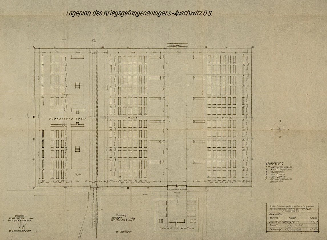 Blueprint of the second architectural plan for Auschwitz-Birkenau, October 1941.