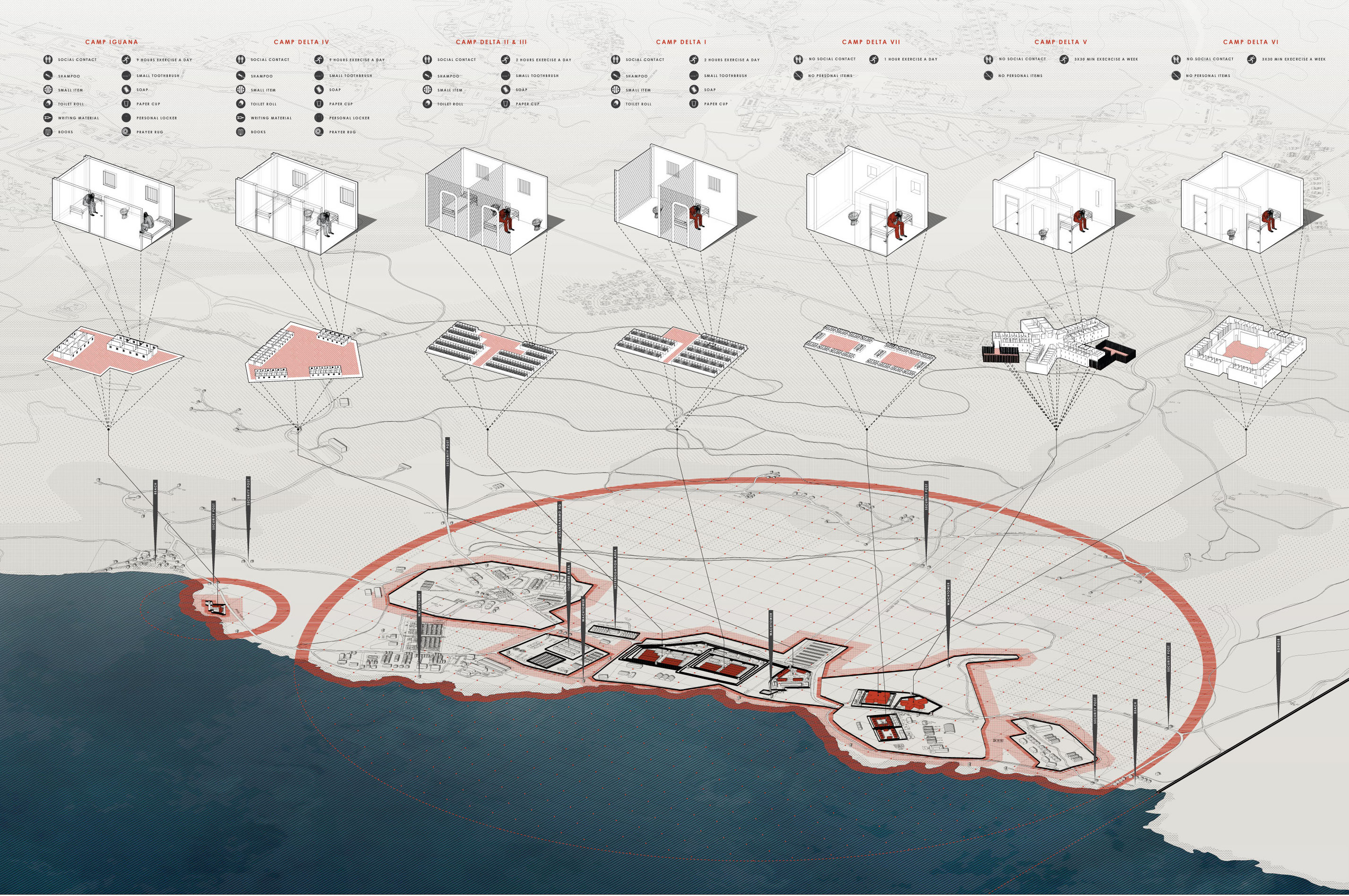 ‘The camp is the space that is opened when the state of exception becomes the rule. In the camp, the state of exception, which was essentially a temporary suspension of the rule of law on the basis of a factual state of danger, is now given a permanent spatial arrangement, which as such nevertheless remains outside the normal order.’