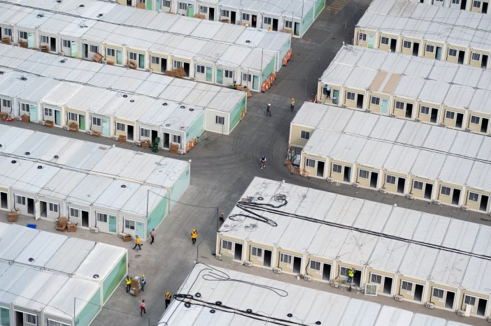 Shipping containers in a quarantine camp under construction in Hong Kong, March 2022.