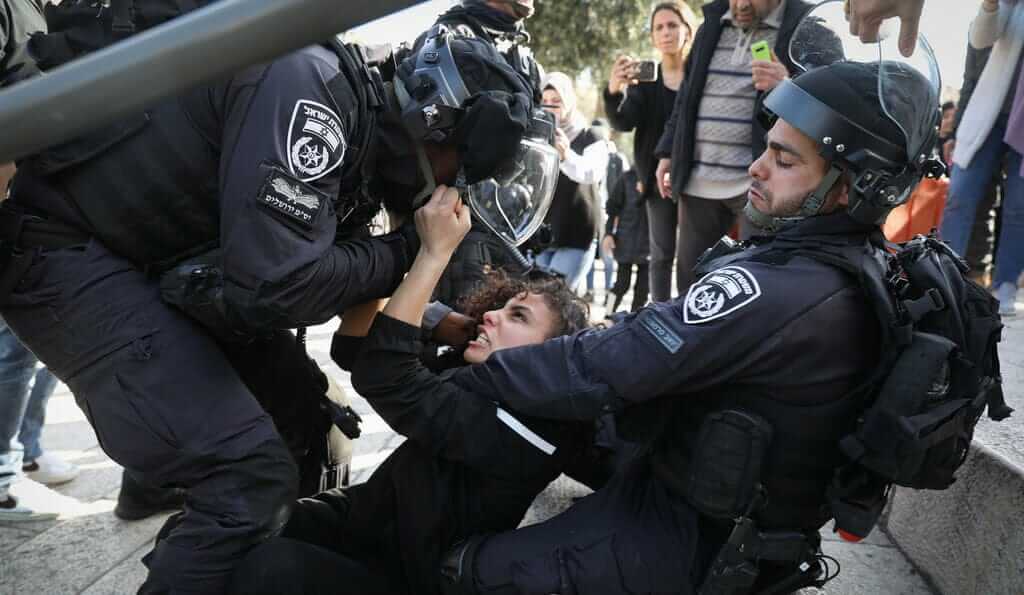 Israeli police assault a 15-year old Palestinian girl in East Jerusalem, February 2022.