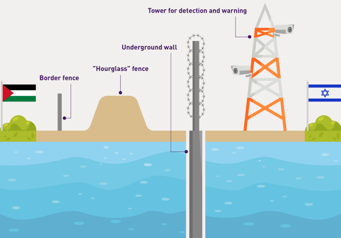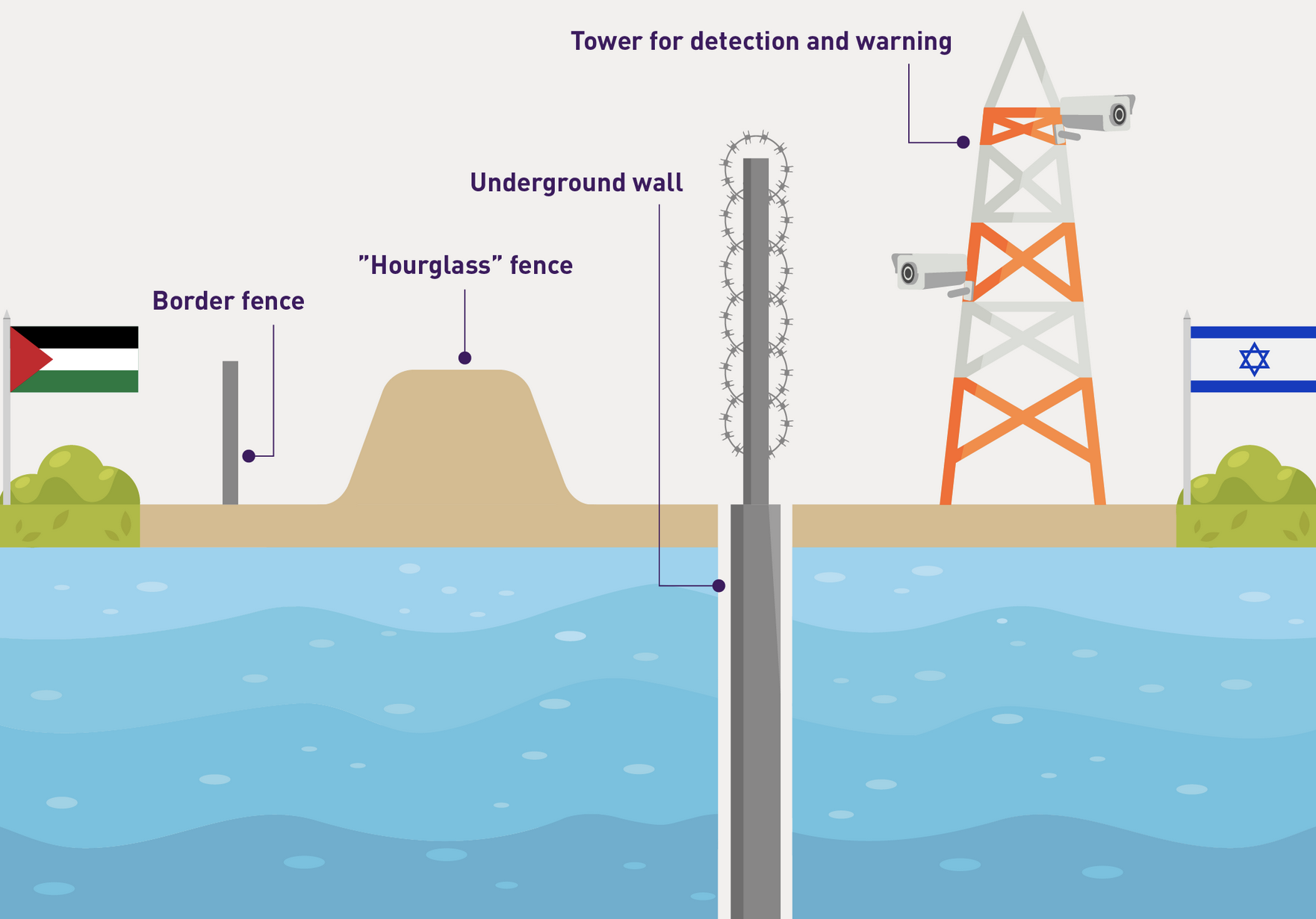 Cross section of the militarised border system enclosing the Gaza Strip, December 2021.
