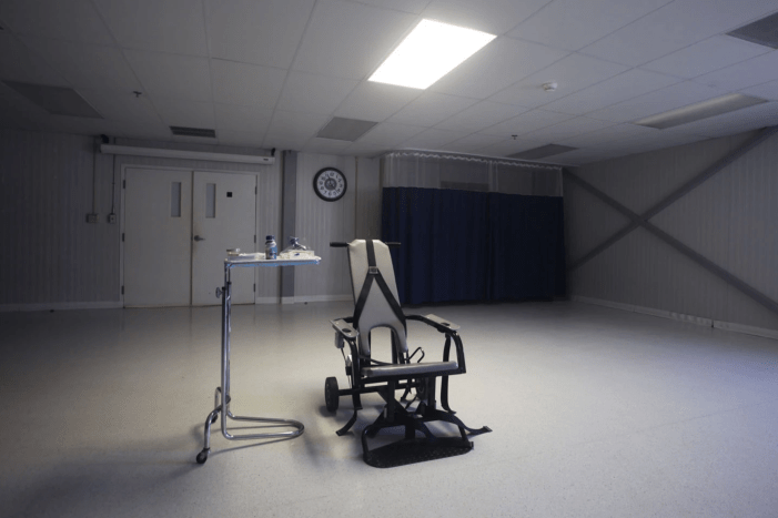Restraining chair used to force-feed prisoners on hunger strike, Camp Delta, May 2013.