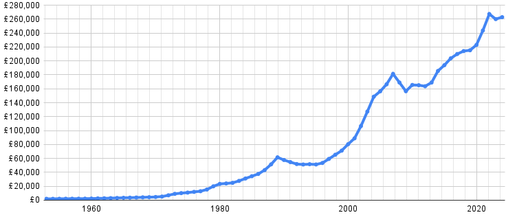 Straight or gay, convinced of the imminence of the End of the World or not, few people are going to have children without the financial security to raise them, the most important being a home in which to raise them. If they are living in their parents’ house, in shared accomodation with other adults, or need a double income to afford the rent or a mortgage on a property of their own, young people are not going to have children. Indeed, the high percentage of the UK’s social housing being used to house immigrants (20 percent in England, 47.6 percent in London), provides them with precisely the security required for them to reproduce in the numbers they are. For the natives of this country, in contrast, the average house price has risen from £2,263 in 1960 (the equivalent of £43,333 today when adjusted for inflation) to £262,902 in 2024, a 600 percent increase in real terms in 64 years. In the UK’s capital of replacement immigration, London, where 47.6 percent of socal housing tenants were born overseas, the average house-price is £507,000. And, once again, there is a correlation between the jump in house prices in the late 1990s and the steep rise in immigration.